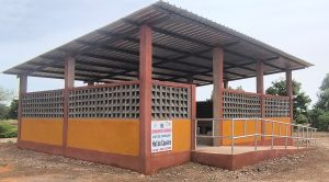 Vue des latrines à deux postes construites au profit du CEG de Diara dans la commune de Zonsé. Réalisation du FDCI III avec l’appui de la coopération allemande à travers la KfW.